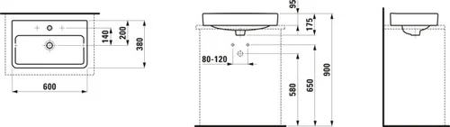 LAUFEN PRO S Waschtisch-Schale, ohne Hahnloch, ohne Überlauf, US gesch., 600x380mm