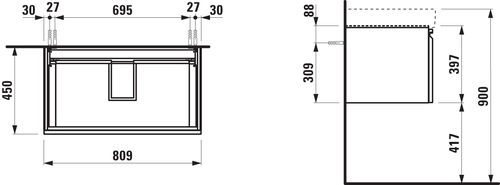 LAUFEN PRO S Waschtischunterschrank, 1 Schublade und Innenschublade, zu Waschtisch H813965, 810x450x390mm