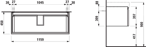 LAUFEN PRO S Waschtischunterschrank 1 Schublade und Innenschublade, zu Waschtisch H814965, 1160x450x395mm