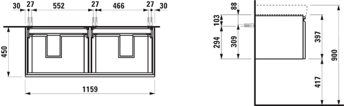 LAUFEN PRO S Waschtischunterschrank 2 Schublade, zu Waschtisch H814966, 1160x450x395mm