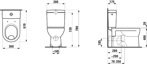 LAUFEN PRO Stand-Flachspül-WC, Abgang waagrecht/senkrecht, 360x670mm