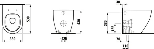 LAUFEN PRO Stand-WC- Kombination, Tiefspüler, wandnah, 360x530mm