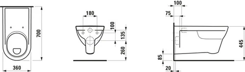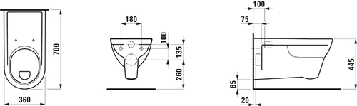 LAUFEN PRO Wand-Flachspül-WC, behindertengerecht, 360x700mm