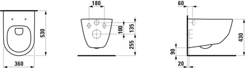 LAUFEN PRO Wand-Tiefspül-WC, spülrandlos, 360x530mm, verdeckte Befestigung
