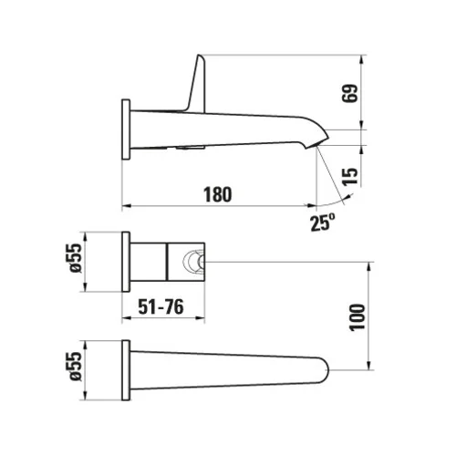 LAUFEN PURE single lever concealed washbasin mixer, fixed spout, 180 mm projection, without waste valve, chrome-plated