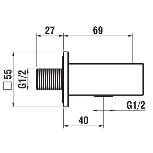 LAUFEN Quadriga Anschlussbogen, mit Brausehalter, Rückflussverhinderer, Ausladung 69mm, 55x55mm