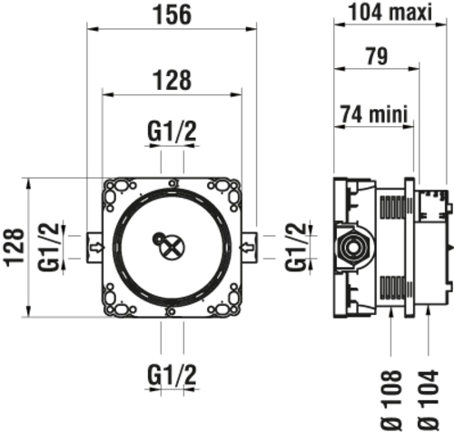 LAUFEN Simibox Light Unterputz-Einbaukörper, Bade-/Duschenmischer, 1/2", mit Vorabsperrung, HF574007000000
