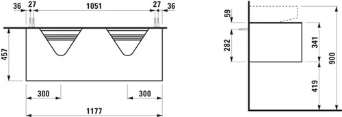 LAUFEN SONAR Schubladenelement, 1 Schublade, passend zu Waschtisch H816341, Ausschnitt links und rechts für Waschtisch