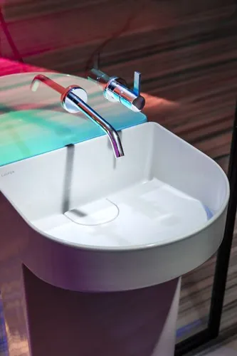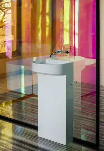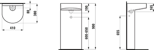 Lavabo con columna integrada, sin agujero para grifo, sin rebosadero, 410x900mm, incl. válvula de desagüe, blanco