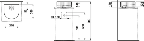LAUFEN Sonar Waschtisch-Schale mit Textur, ohne Hahnloch, ohne Überlauf, 340x340mm, inklusive Keramikabdeckung für Ablaufventil, weiß