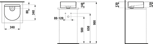 LAUFEN Sonar Waschtisch-Schale, ohne Hahnloch, ohne Überlauf, 340x340mm, inklusive Keramikabdeckung für Ablaufventil, weiß