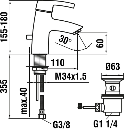 - Armaturenhöhe: 155 mm