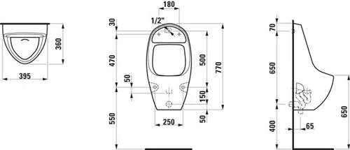LAUFEN Tamaro-S Absauge-Urinal, L/B/H: 395/360/770 mm, mit Annährungselektronik, für Batterie 6V