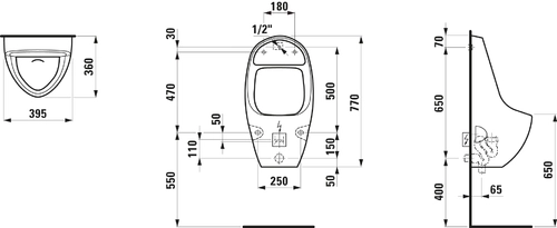 LAUFEN Tamaro-S Absauge-Urinal, L/B/H: 395/360/770 mm, mit Annährungselektronik, für E-Netz