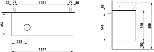 - Breite: 1175mm, Tiefe: 455mm, Höhe: 600mm