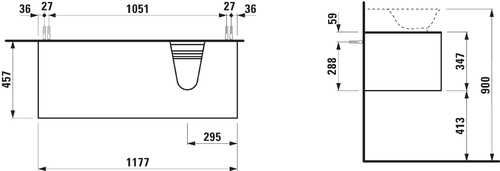 LAUFEN THE NEW CLASSIC Schubladenelement, Ausschnitt rechts, 1175x455x345mm, 1 Schublade, zu Aufsatz-Handwaschbecken H816852