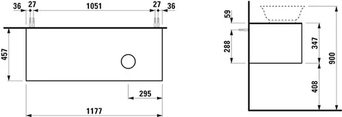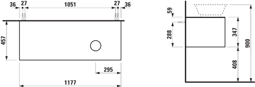 LAUFEN THE NEW CLASSIC Schubladenelement, Ausschnitt rechts, 1175x455x345mm, 1 Schublade, zu WT-Schale H812852/3