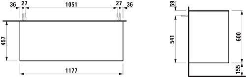 - Breite: 1175mm, Tiefe: 455mm, Höhe: 600mm