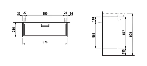 LAUFEN THE NEW CLASSIC Waschtischunterschrank, 2 Schubladen, 975x315x675mm