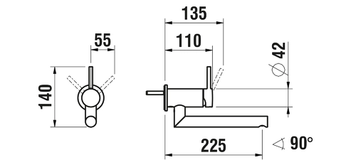 Mezclador de lavabo TwinPlus de LAUFEN, empotrado, caño giratorio, proyección de 225 mm, para Simibox 1-Point