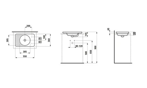LAUFEN VAL Einbauwaschtisch, 1 Hahnloch links, ohne Überlauf, 550x360mm