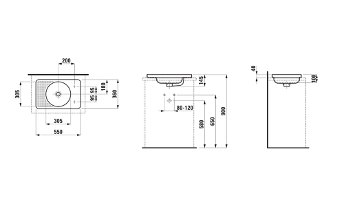 LAUFEN VAL Einbauwaschtisch, ohne Hahnloch, ohne Überlauf, 550x360mm