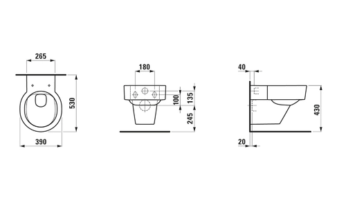 LAUFEN VAL Wand-WC, Tiefspüler, spülrandlos, 390x530mm