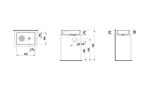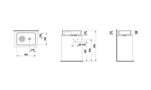 LAUFEN VAL Waschtisch-Schale, ohne Hahnloch, ohne Überlauf, US geschl. 550x360mm