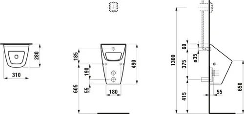 LAUFEN Vila Absauge-Urinal, L/B/H: 310/280/490 mm, weiß, ohne Löcher für Deckelmontage