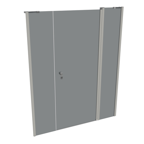 - Gedeeltelijk omlijste deur met één glaspaneel met vast segment, naar binnen en naar buiten openend, en één zijpaneel