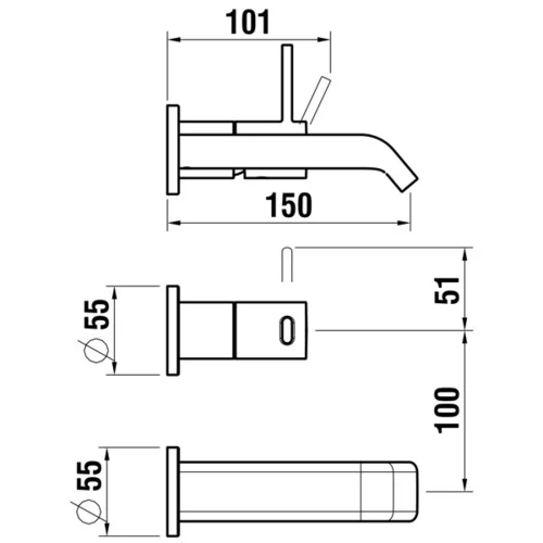 LAUFEN Meda wastafelmengkraan, inbouw, voor Simibox 2-punts, projectie 150mm, chroom