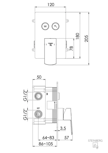 Steinberg Serie 342 prefab installatieset, voor bad/douche, 2 verbruikers, 120x180mm
