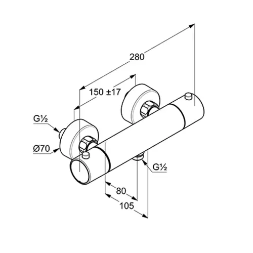 KLUDI OBJEKTA thermostatische douchemengkraan, wandmontage, temperatuur keuzehendel, chroom
