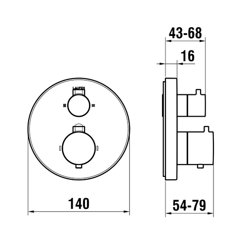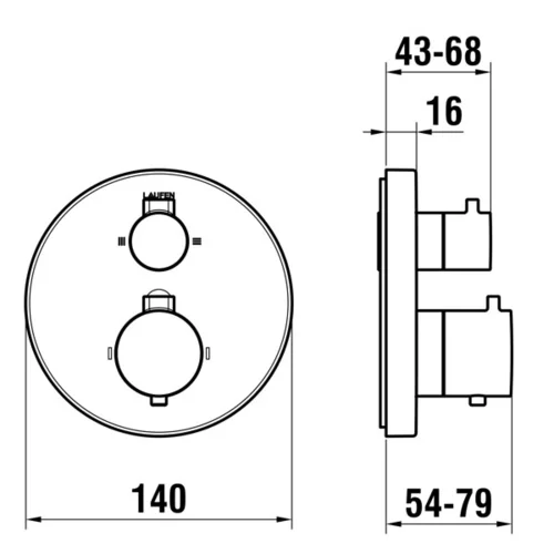 LAUFEN Meda Monoknop badmengkraan, thermostaat, inbouw, voor Simibox, inbouw-zekeringcombinatie, chroom