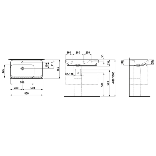 - Afmetingen interne wastafel: 580 x 325 mm