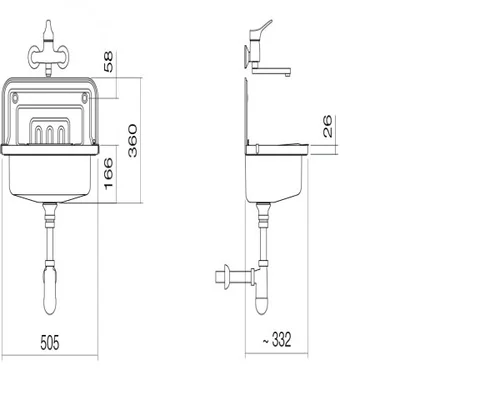 Alape gootsteenset, met eenhendel mengkraan, 505x360x330mm, zonder kraangat