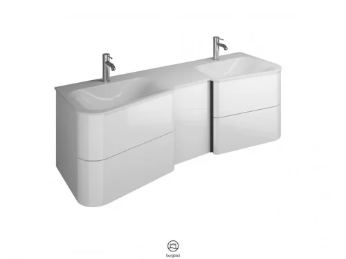 burgbad Badu dubbele wastafel wit briljant, inclusief wastafelonderkast, 4 uittrekelementen, 1 deurstop links, breedte 1520mm