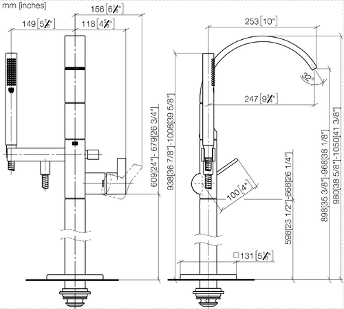 - Hoogte standpijp 598 - 668 mm