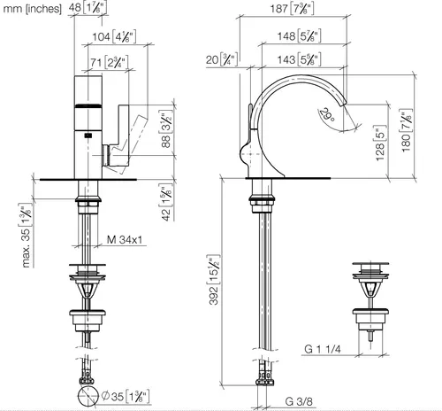 Dornbracht CYO wastafels met ééngreepsmengkraan en Baduitloop, 143mm projectie