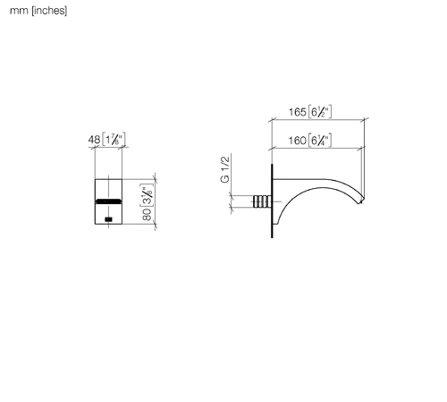 Dornbracht CYO wastafeluitloop zonder afloop, uitloop 160mm