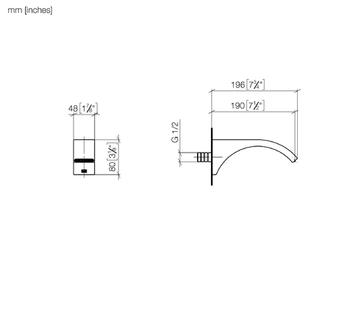 Dornbracht CYO wastafeluitloop zonder afloop, uitloop 190mm