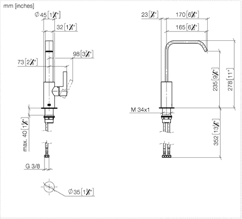 Dornbracht IMO monoknop wastafelmengkraan met hoge uitloop, zonder afloop, projectie 165 mm