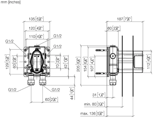 - 2 x toevoer G 1/2"