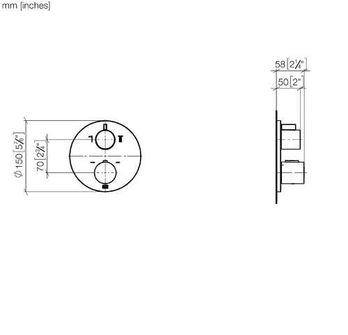 Dornbracht inbouwthermostaat met bidirectionele stromingsregeling, afdekplaten 150mm