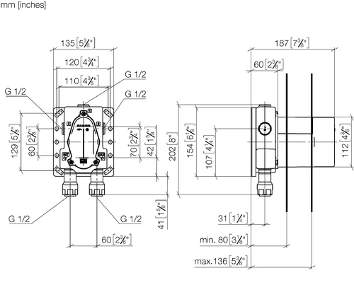 - 2 x aansluiting 1/2" binnendraad (koud/warm), DN 15