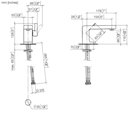 Dornbracht LULU wastafels zonder afloop, 155mm projectie