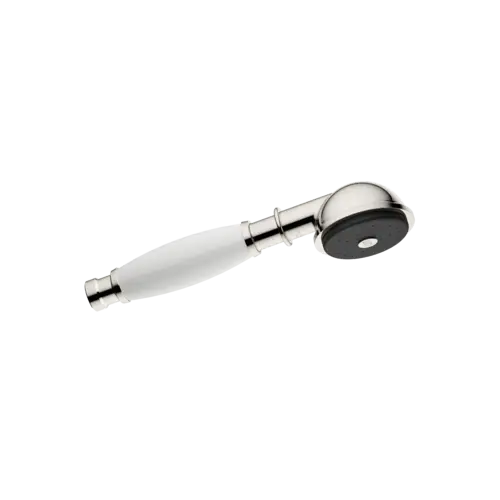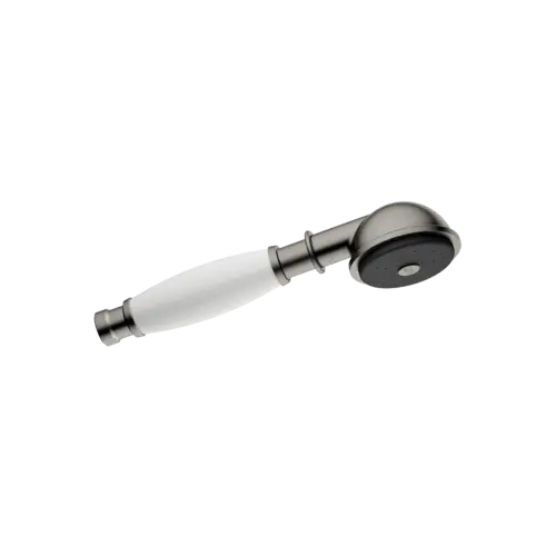 - 1 x handdouche van metaal met greep van wit porselein