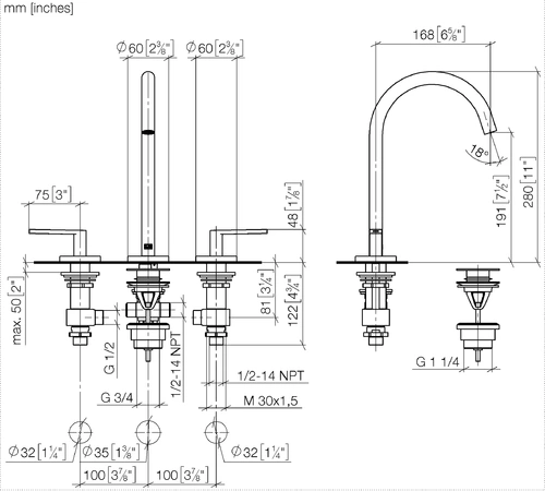 - Hoogte kraan 280 mm