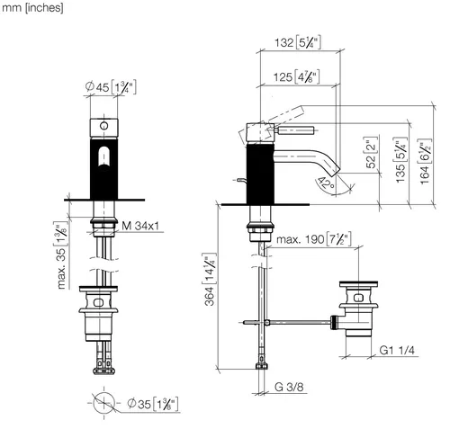 Dornbracht META wastafels met ééngreepsmengkraan en verzinkbare uitloop, 125 mm uitstekend, met lineare structuur