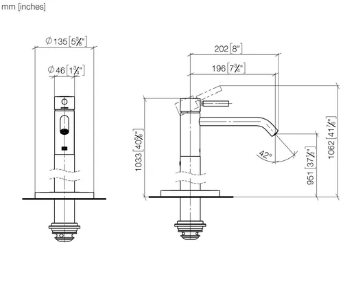 Dornbracht META wastafels met ééngreepsmengkraan met standpijp zonder afloop, projectie 196mm